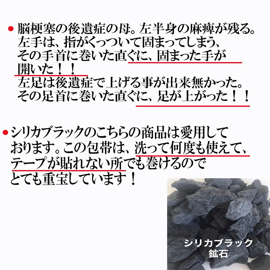 遠赤外線の天然鉱石シリカブラックで伸縮包帯を丸ごと手染め加工してあります。