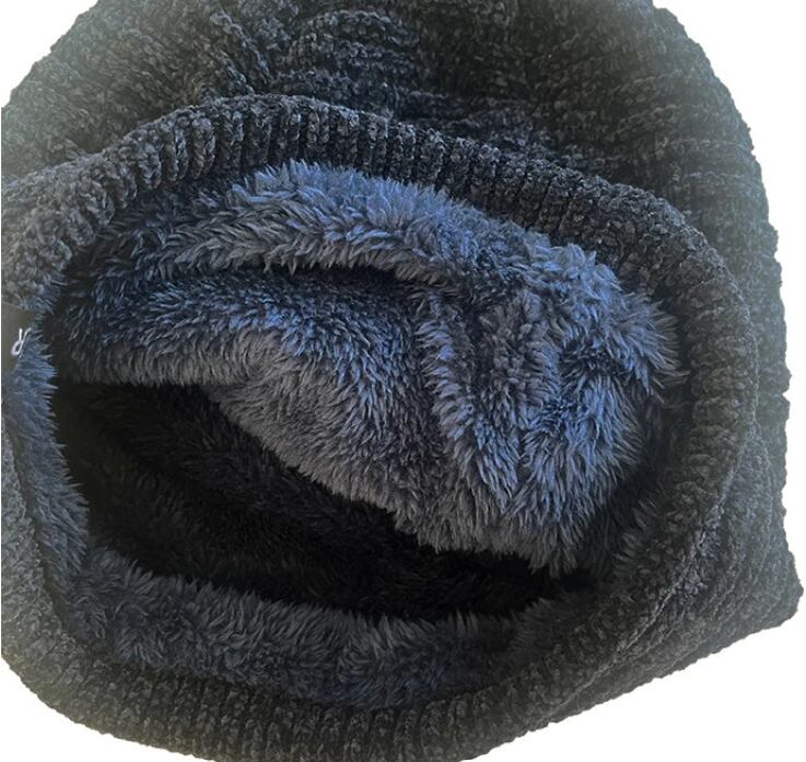 裏ボア・ニット帽子の全体を天然鉱石シリカブラックにて全体を手染め加工してあります。