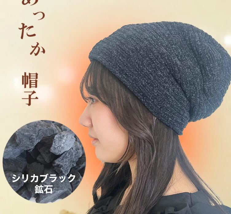そのまま、身に着けても耳までしっかり覆い暖かいのですが、更に天然の遠赤岩盤浴効果により芯からジワーっと癒されます。