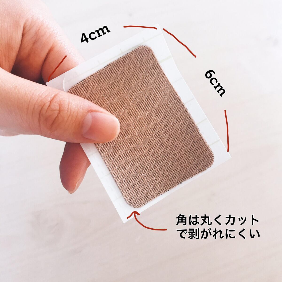 1, 『シリカブラック・テーピングテープ』を切ってから後ろの紙をはがす。(伸縮性があるので両側を持って引っ張ると紙が破れて剝がれやすいです。)